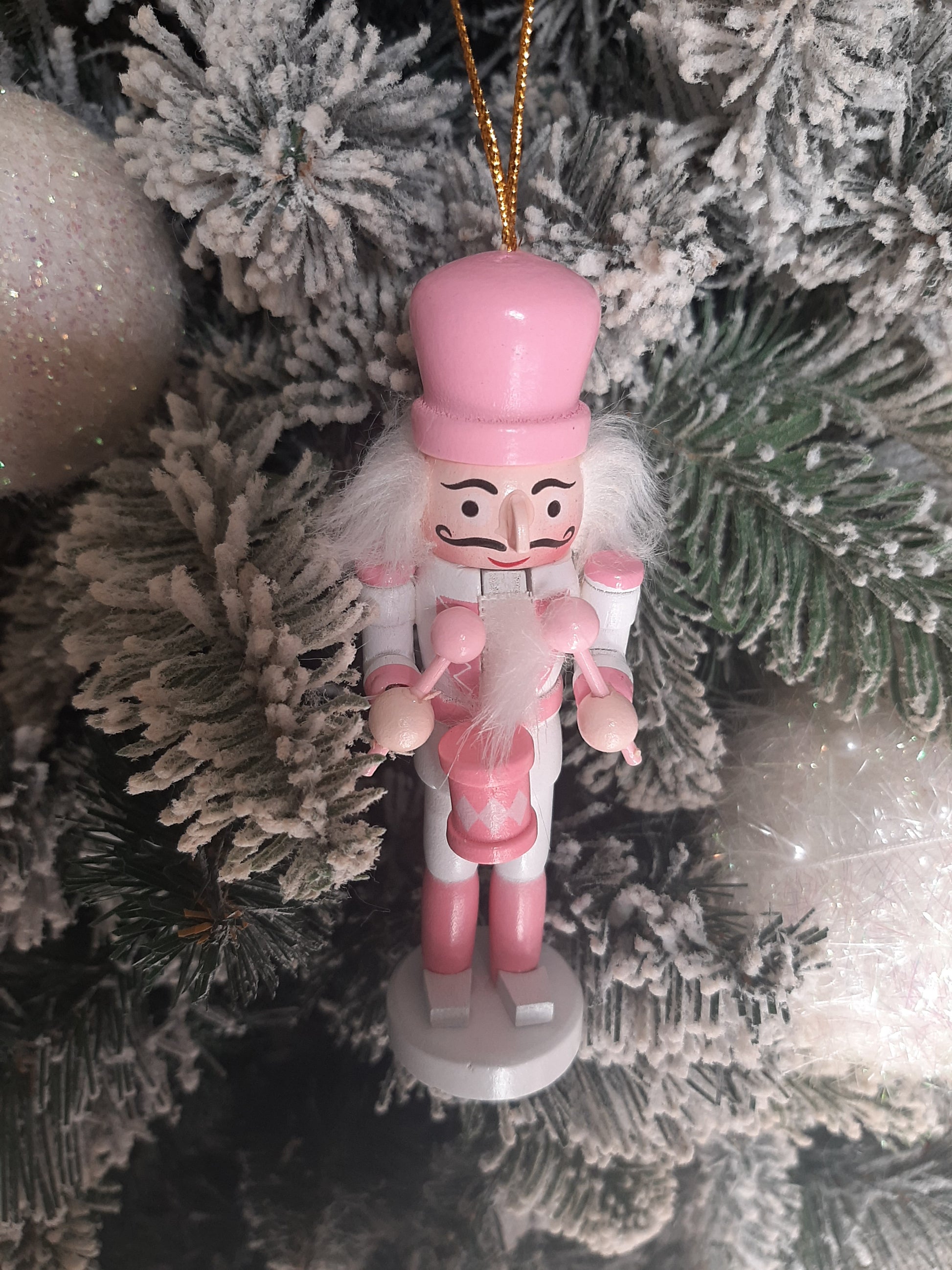 Gather 'round the Christmas table and show off your style with this nutcracker ornament! Whether you're a pink-loving king, a daring soldier, or a funky drummer boy, it's time to let your Christmas décor dream come true! Crafted from wood, this Christmas cutie is sure to bring any room colorful charm. Yeehaw!