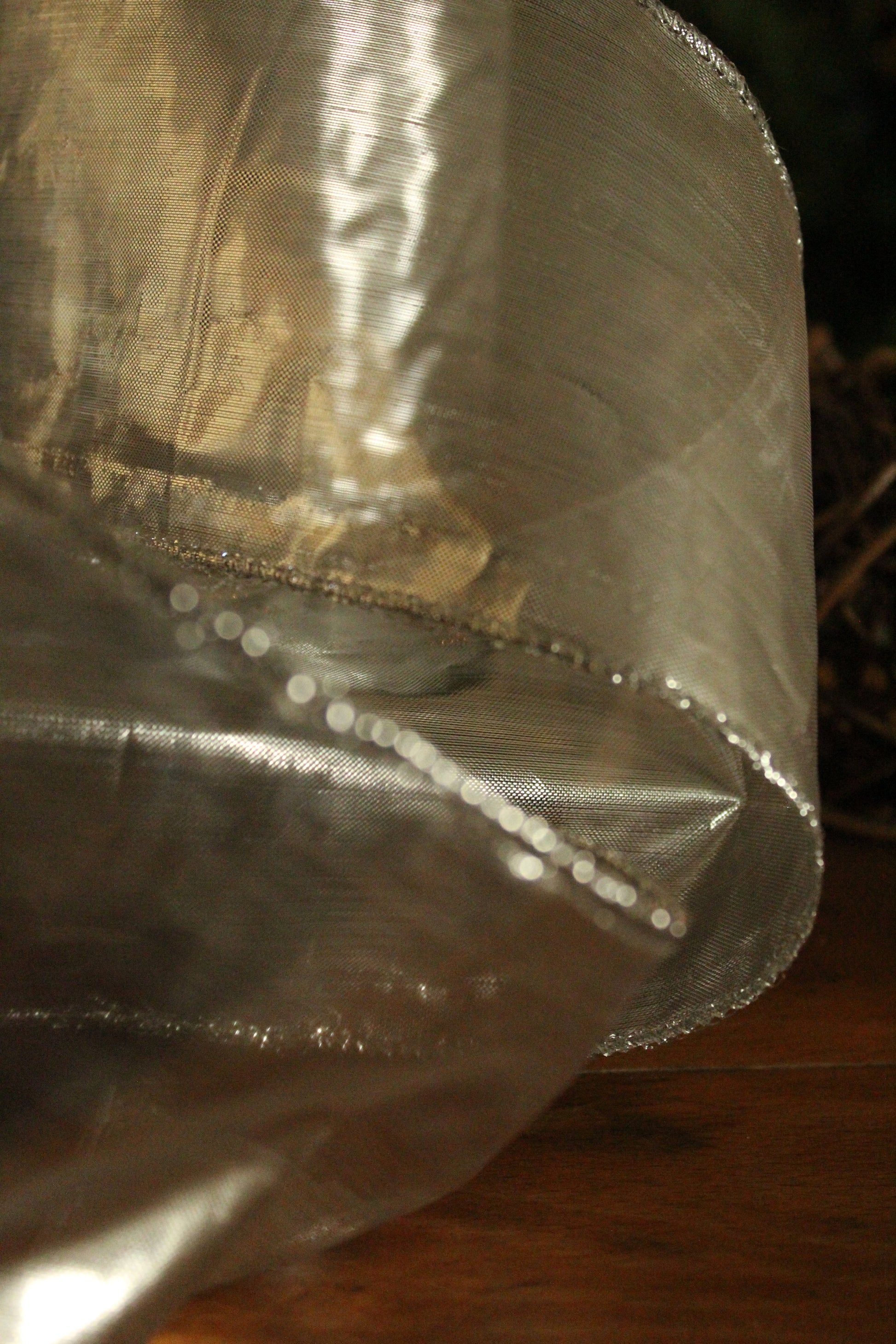 Christmas Ribbon - Silver 100 mm Wired Ribbon